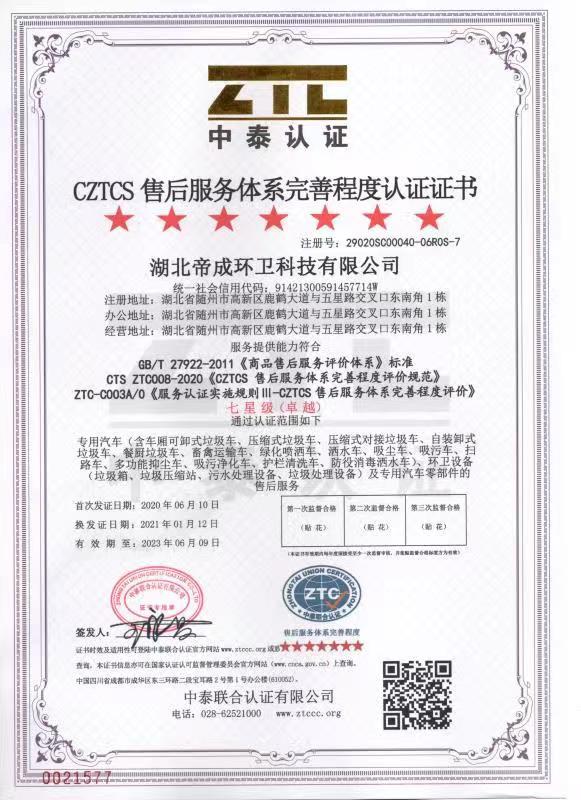 湖北帝成環(huán)衛(wèi)科技有限公司售后部組織相關(guān)部門進(jìn)行評(píng)審鎖定故障及安全事故原因,判定責(zé)任方,第一時(shí)間解決客戶損失。如問題原因由供應(yīng)商質(zhì)量問題導(dǎo)致,追訴供應(yīng)商責(zé)任,并責(zé)成供應(yīng)商對(duì)所有涉及車輛進(jìn)行更換維修,保證產(chǎn)品質(zhì)量,承擔(dān)客戶損失。并對(duì)此類故障提供分析報(bào)告,橫縱向展開排查同批次或同類型產(chǎn)品質(zhì)量,確保出廠零部件滿足車輛適用要求。